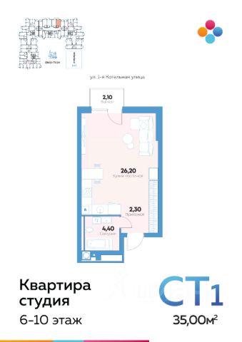 Продаётся студия в строящемся доме (Дом 1), срок сдачи: I-кв. 2028, общей площадью 24.47 кв.м., на 6 этаже. Новый жилой комплекс "Точка" от застройщика "Будущее" расположен по адресу: г. Астрахань, ул. Краснодарской, 43а