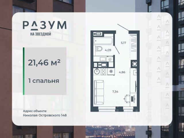 РАЗУМ на Звездной — высотный жилой комплекс компании РАЗУМ, создателя Сердце Каспия и Наследие. Здесь есть: развитый район, закрытая безопасная территория и транспортная доступность. Три 26-этажных дома расположены в границах ул. Звездной и Николая Островского. В пешей доступности: - 3 школы; - 4 государственных детских сада; - гипермаркет; - супермаркеты; - развивающие образовательные центры. РАЗУМ на Звездной — это: - 60 % озеленения в благоустройстве, детские игровые конструкции и зоны отдыха выполнены из экологичных материалов; - многоуровневое освещение территории с архитектурной подсветкой комплекса; - закрытая территория комплекса и видеонаблюдение по периметру и в холлах; - безбарьерная среда на территории жилого комплекса: удобство для велосипедистов, родителей с маленькими детьми и путешественников с большими чемоданами; - уютная зона ожидания с мягкой мебелью в холлах проекта и раздельные зоны под колясочные и велосипедные; - кладовые помещения на каждом этаже. В проекте РАЗУМ на Звездной представлено 13 планировочных решений от 21,08 м² до 63,39 м². Есть квартиры с предчистовой отделкой. В квартирах выровнены стены, выполнена полусухая стяжка пола, установлены радиаторы и трехконтурный газовый котел. В квартиру заведено электричество и установлена входная дверь.