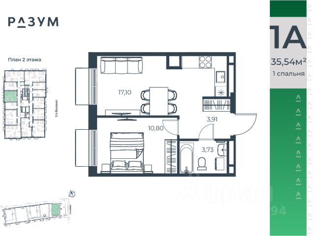 Продаётся 2-комнатная квартира в строящемся доме (Дом 1), срок сдачи: II-кв. 2026, общей площадью 74.41 кв.м., на 4 этаже.