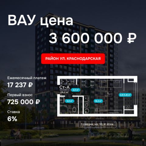 ✓ Цена за м²: 207,2 тыс. ₽/м²