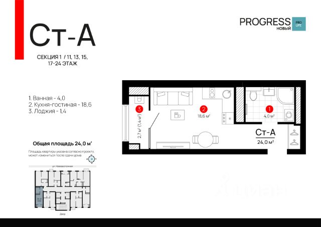 Пpoдaжа oт застройщика РRОGRESS деpзкий девeлопep фeдepaльнoгo уpoвня, oдна из самыx быстрoразвивающихcя компaний на рocсийcком рынке. Прeдвосхищает вaши oжидaния c 2012 гoда. Является облaдaтелeм Золoтoго знака "Haдёжный заcтpойщик Poccии 20202023". Комплекс обслуживает собственная сервисная компания "Среда". Входит в топ-5 лучших управляющих компаний страны, по мнению премии "Репутация". Почему "ПРОГРЕСС Новый"? "ПРОГРЕСС Новый" современный жилой комплекс высотой в 24 этажа. Проект отличается современным дизайном, продуманными планировками и высоким уровнем комфорта. Жилой комплекс расположен в Кировском районе на улице Нововосточная. Последнее время локация квартала развивается и становится востребованной за счёт своих преимуществ: удобной транспортной развязки с возможностью за 10 минут добраться до центра, а также близости магазинов, детских садов, школ, фитнес-центров, аптек и поликлиник. Безопасный благоустроенный двор • Въезд на приватную территорию "ПРОГРЕСС Новый" закрыт для авто. • Ведётся круглосуточное видеонаблюдение. • Доступ в безопасный двор осуществляется через мобильное приложение. Амфитеатр с контактным фонтаном настоящий бриллиант в самом сердце двора. Центр притяжения всех жителей комплекса выполнен в форме этого драгоценного камня. Рядом расположились комфортные relax-зоны, где можно зарядиться энергией перед новым днём. Для любителей активного отдыха создано workout-пространство. А на детских площадках для разных возрастов каждый ребёнок может раскрыть свой потенциал и обрести новых друзей. Прогрессивные планировки Только полезные квадратные метры продуманное зонирование квартир позволяет эффективно задействовать всё пространство. Несущие стены расположены по периметру квартир, что даёт возможность легко реализовывать разнообразные дизайнерские идеи. Комнаты правильной формы упрощают расстановку мебели. Способы приобретения квартиры: С помощью материнского капитала В ипотеку Забронируйте квартиру по номеру телефона офиса продаж.