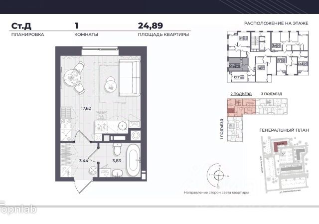 Находится на 12 этаже 17-этажного дома. Удобная планировка: кухня-гостиная и отдельная спальня.
