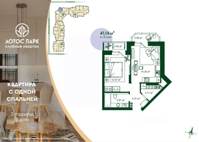 Продаётся 1-комнатная квартира в строящемся доме (Дом 4), срок сдачи: IV-кв. 2027, общей площадью 36.24 кв.м., на 8 этаже. Современный жилой комплекс "Лотос Парк" возводится в самом центре города. В шаговой доступности находятся достопримечательности и парки города. Рядом расположены школы, детские сады, торговые центры и бассейн. "Лотос парк" - это единое приватное пространство с кинотеатром, зоной барбекю, многофункциональной спортивной площадкой и двухуровневыми детскими зонами. Планировки квартир имеют нетривиальные проектировочные решения и впечатляют своим объемом (высота потолков от 3 до 3,4 м), вариативностью (площадь квартир от 40 до 130 кв. м., приватностью (от 2-х квартир на площадке) и завораживающими видами из панорамных окон. Квартира сдается с предчистовой отделкой с современным качественной инженерией и техническим оснащением: - Немецкий двухконтурный газовый котёл Vaillant turboFIT VUW 242/5-2 (H-RU). Автоматического типа с системами защиты и экономии топлива, мощностью 23,7 кВт для обогрева до 230 м2 - Входная дверь Torex DELTA-100 с тремя слоями теплоизоляции и шумоизоляции защитят от холода, сквозняков и шума из подъезда. В двери установлено два замка, с внешней стороны у дверей порошково-полимерное покрытие, устойчивое к ударам и царапинам - Видеодомофон. Расширенная системи видеонаблюдения, включающая более 300 камер, которые охватывают межквартирые площадки, лифты, подъездные холлы, придомовую территорию и паркинг - Видеонаблюдение. Закрытая приватная территория, автоматизированные ворота и пешеходные калитки, подключенные к системе видеодомофонии. Проектом предусмотрен пост физической охраны по ул. Трофимова - Остекление тёплым алюминиевым профилем Alutech W62. Группа компаний Alutech — ведущий производитель алюминиевых профильных систем в СНГ. Алюминиевый профиль класса А более прочный, по сравнению с ПВХ-профилем, и гарантирует высокий уровень шумоизоляции и теплоизоляции. - Премиальные лифты. В каждом подъезде пассажирские и грузопассажирские лифты премиум-класса: скоростные, бесшумные и энергоэффективные.