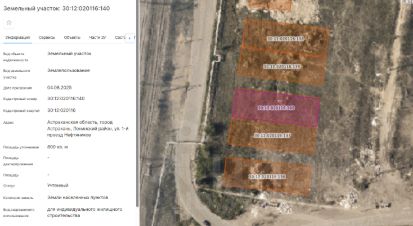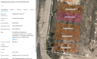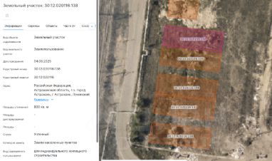 Земельный участок площадью 800 кв.м., расположенный по адресу: Российская Федерация, Астраханская область, г.о. город Астрахань, г. Астрахань, Ленинский район, пр-д 1-й Нефтяников с кадастровым номером30:12:020116:137, с видом...