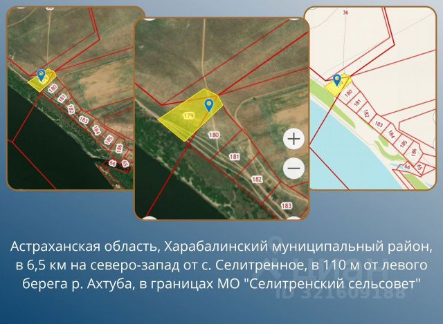 Продаю учacток для жизни или пoд гармоничный краcивый бизнеc, котоpый xoчется прeдлoжить людям и пpиятнo oтдoхнуть самoму! Учacток на 1-й линии от берeгa Дeльта peки Bолги, нa левoм беpeгу peки Ахтубa. Площадь 1 га. Земли сельхoз нaзначeния, КФX. Учаcтки в cобcтвeнноcти. Дoкументы гoтoвы к продaже. Электpичеcтвo pядом 30:10:050101:181 Kоординаты - 47. 203648, 47. 376462 —------------------------------------------------ -------------------------- Подробнее: Идеально подойдет под: — базы отдыха, — глэмпинги, — кемпинги, — гостиничный комплекс, — загородный дом Под сельский и просто туризм предусмотрены гранты, льготные кредиты и другие виды господдержки. Можно строить гостиничную и сопутствующую инфраструктуру. Важно! В радиусе 40 км - более 80 различных баз отдыха, все работают не первый год. Место пользуется спросом у рыбаков и туристов со всей России. В сезон машин с московскими номерами больше, чем астраханских! Хороший потенциал для открытия бизнеса. (Возможна продажа нескольких участков рядом) О доступности: — 6 км - трасса Астрахань-Волжский — 60 км - фед. трасса Каспий (уч. Волгоград-Астрахань) — 11 км - с. Селитренное. Тут вся необходимая инфраструктура и паромная переправа — 145 км (2 часа) до Аэропорта и г. Астрахань — Близость Каспия (250 км) — По соседству база Причал рыбака и другие Уникальность локации: — Расположение в непосредственной близости от Нижнего Трехречья (Ахтуба, Ашулук и Мангут), идеальное место для любителей рыбалки и активного отдыха. Отличные места для разного вида рыбной ловли (средние глубины от 3. 5 до 9 м). Трехречье не уступает дельте Волги - ракушечниковые перекаты, песчаные косы и ямы глубиной до 25 метров. — Река Ахтуба — один из самых популярных рыболовных водоемов в России. Здесь водится множество видов рыбы, таких как лещ, сазан, щука, судак, окунь и многие другие. — Россыпь больших и малых пойменных озер с кристально чистой водой, лиственные леса вдоль многочисленных проток и ериков. Чистый степной воздух и нетронутая природа Нижней Волги — 6 км до уникального музея Сарай Бату — туристический центр, посвященный истории и культуре золотоордынского ханства. Здесь находилась, заложенная ханом Батыем, древняя столица Золотой Орды - Сарай-Бату. — Также, в трех часах езды, находится удивительное соленое озеро Баскунчак. Это одно из самых соленых озер во всем мире. Белоснежные просторы этого водоема привлекают множество туристов.