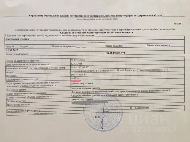 • ✓ В базе Циан 6 земельных участков в селе Новый Рычан Володарского района