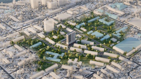 Жилой комплекс «Рыбацкий» представляет собой четыре кирпичных здания переменной этажности 9-10 этажей.