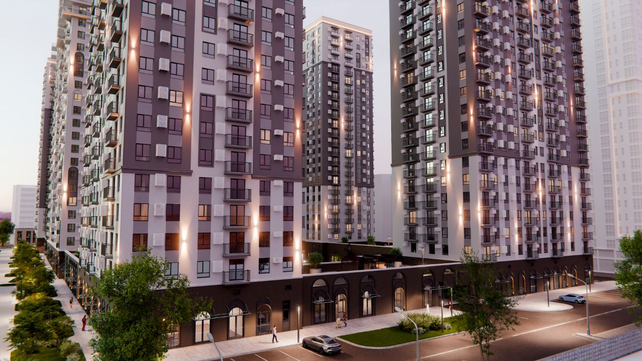 Жилой комплекс «Флагман» представляет собой 3-секционное монолитно-кирпичное здание переменной этажности 15-17 этажей.