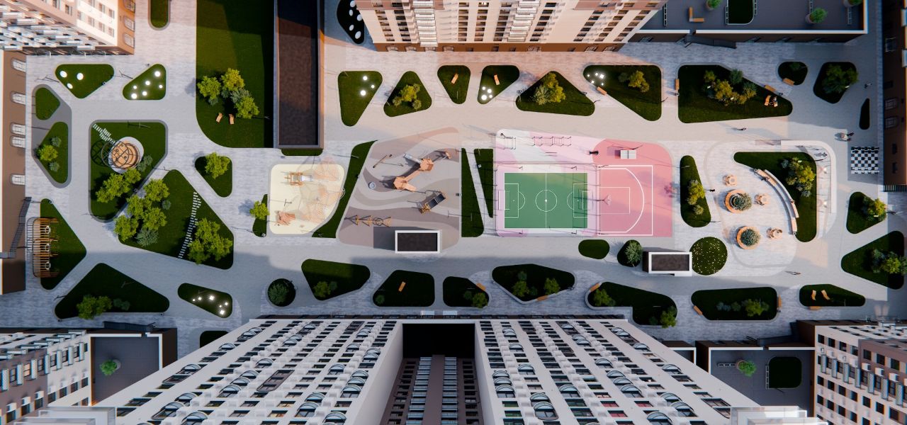 Жилой комплекс «Лазурный» представляет собой шесть монолитно-кирпичных зданий переменной этажности 15-17 этажей.
