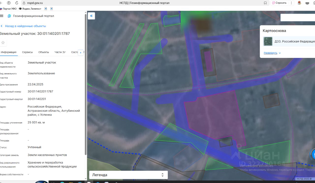 Лот 2 с кадастровым номером 30:01:140201:1787, площадью 25 001 кв. м, расположенный по адресному ориентиру: Российская Федерация, Астраханская область, Ахтубинский район, Успенский сельсовет, вид разрешенного использование земельного участка Хранение и переработка сельскохозяйственной продукции