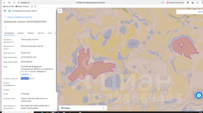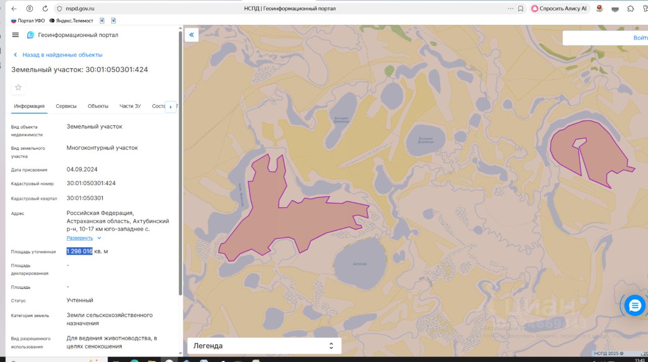 с кадастровым номером 30:01:050301:424, площадью 1 298 016 кв. м, расположенный по адресному ориентиру: Российская Федерация, Астраханская область, Ахтубинский р-н, 10-17 км юго-западнее с. Капустин Яр Ахтубинского района Астраханской области, вид разрешенного использование земельного участка Для ведения животноводства, в целях сенокошения.