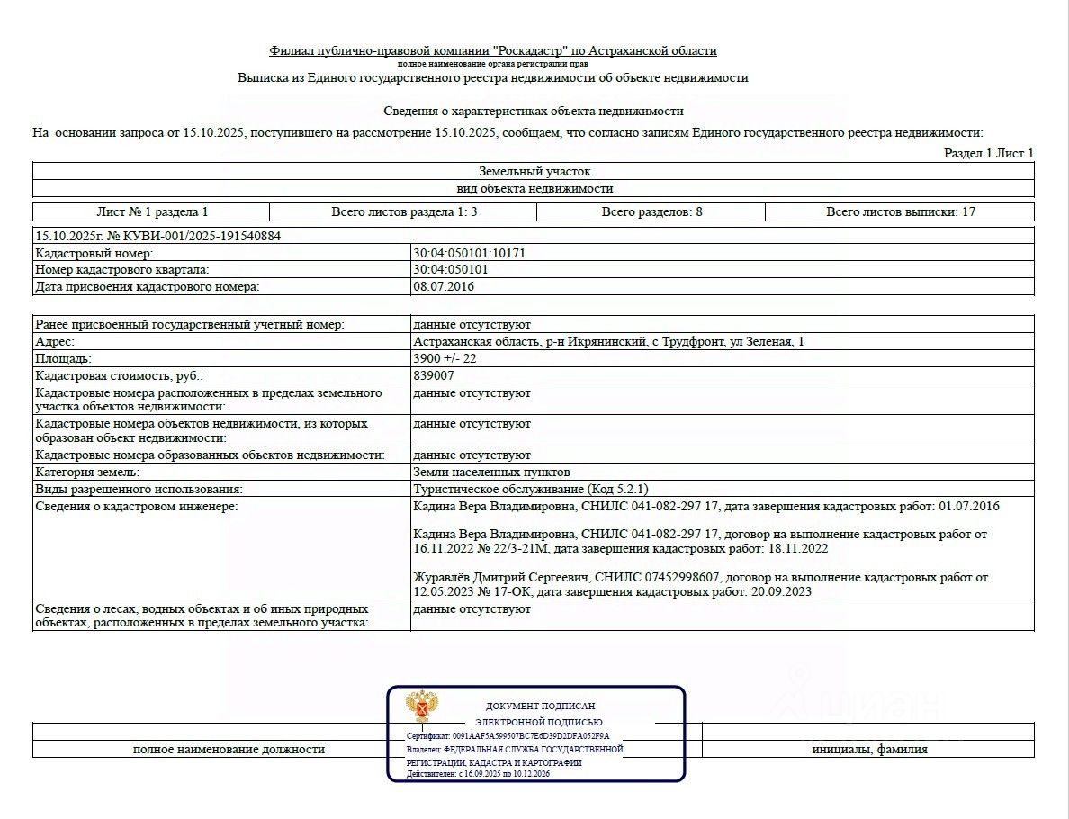 Земельный участок площадью 3900 кв.м., кадастровый номер 30:04:050101:10171
