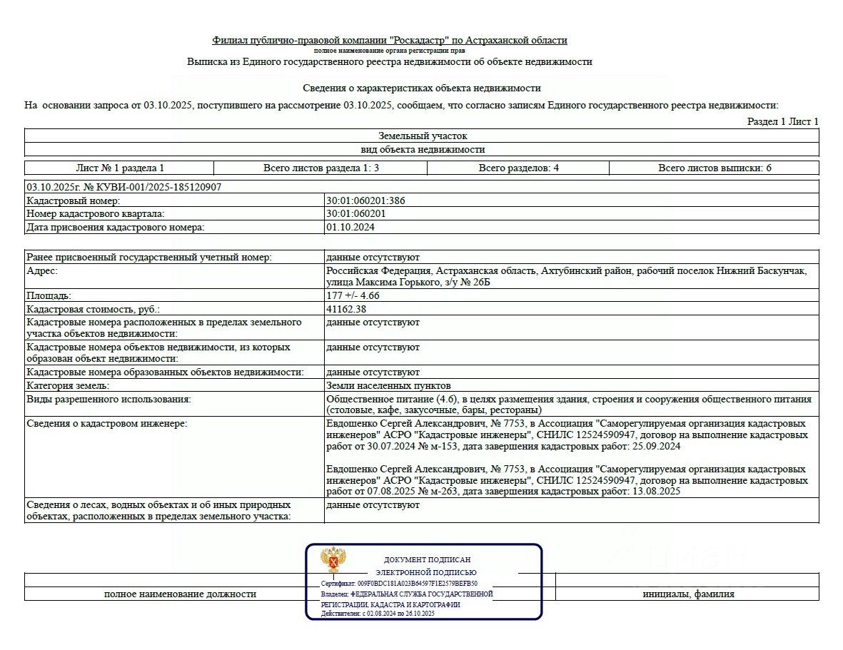 Земельный участок площадью 177 кв.м., кадастровый номер 30:01:060201:386