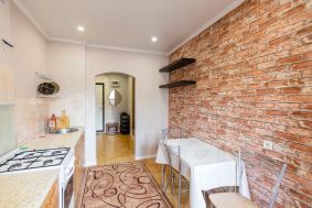 Есть все необходимое для комфортного проживания: wi-fi , качественное постельное белье, комплект полотенец, подушки, посуда в полной комплектации включая фужеры, утюг, моющие средства.
