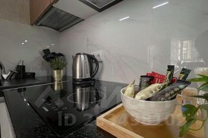 Кухня: индукционная плита, духовой шкаф, холодильник, микроволновая печь, чайник, набор посуды, питьевая вода, чай, кофе, специи, конфеты.