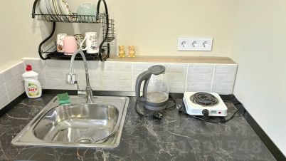 Имеется TV с выходом в интернет (для просмотров фильмов), Wi-Fi с коростным интернетом, микроволновая печь, плита, чайник, кухонная утварь, сушилка, фен, утюг и т. д.