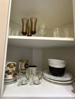 Микроволновая печь, чайник, набор посуды для приготовления пищи.