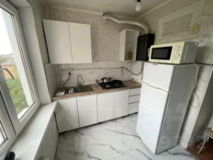 Частичная мебель: кухонный гарнитур, диван, комод. Вторая комната на данный момент пустая, есть возможность поставить 2-спальную кровать.