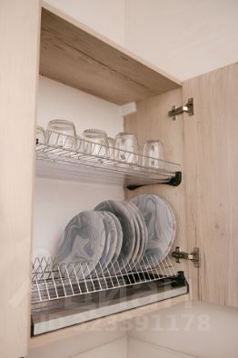 На кухне для любителей готовить, а не покупать еду духовой шкаф, плита, электрический чайник, холодильник, микроволновая печь, турка для любителей кофе с утра и красивая посуда;
