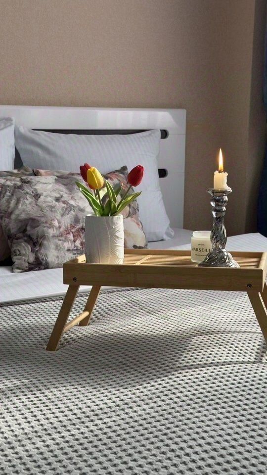 Выглаженное постельное бельё и пушистые полотенца в одной цветовой гамме. Аромат мыла уж точно не оставит Вас равнодушным;