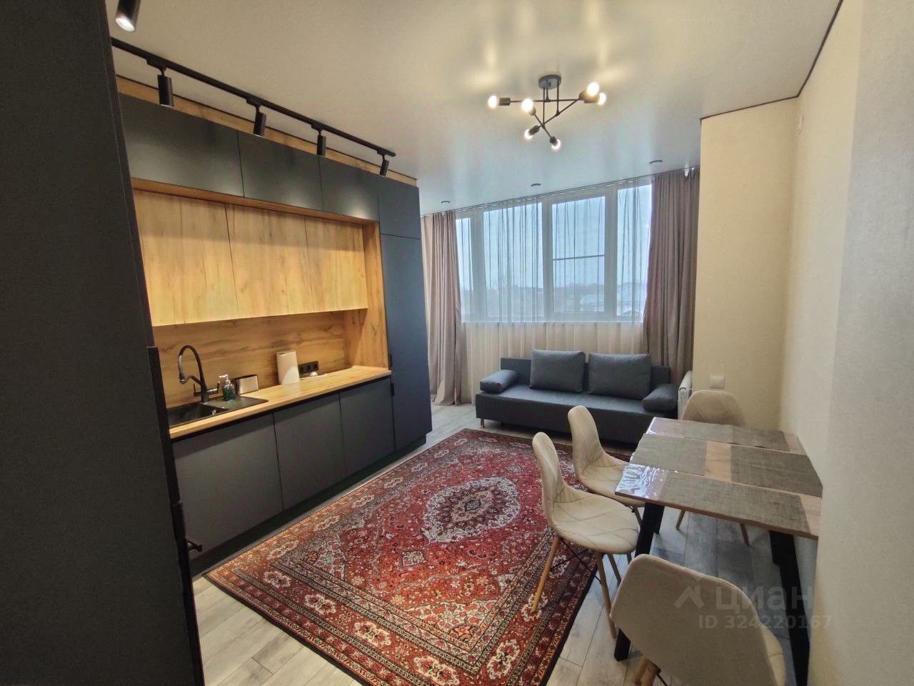 Сдается уютная однокомнатная квартира с дизайнерским ремонтом. Общая площадь — 53.5 кв. м, жилая площадь — 17 кв. м, просторная кухня — 18 кв. м. Квартира расположена на 3 этаже 10-этажного кирпичного дома, построенного в 2021 году. Высота потолков составляет 2.8 метра. В доме есть грузопассажирский лифт.