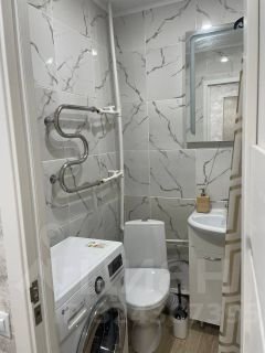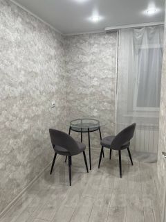 В квартире есть всё необходимое для проживания: современная мебель на кухне и в комнате, а также вся необходимая техника — кондиционер, холодильник и стиральная машина.