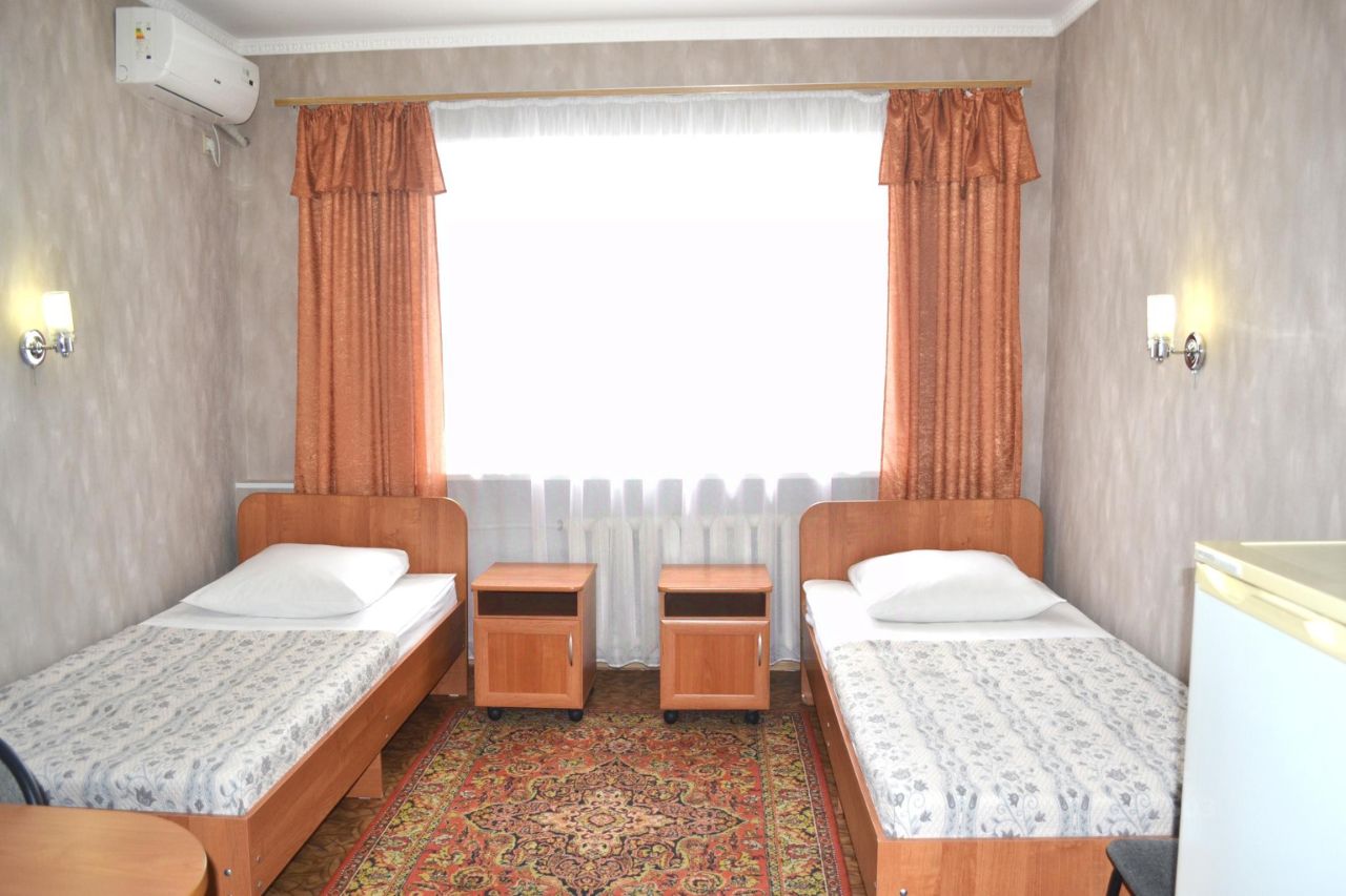 Однокомнатный двухместный номер стандарт с двумя односпальными кроватями имеет: кондиционер/вентилятор, телевизор, холодильник, телефон. Мебель выдержана в классическом стиле. Санузел оснащён ванной/душем, фирменной косметикой.