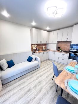 Простор для компании: В квартире с комфортом могут разместиться до 4 гостей. Вас ждет удобная двуспальная кровать с ортопедическим матрасом и новый раскладной диван.
