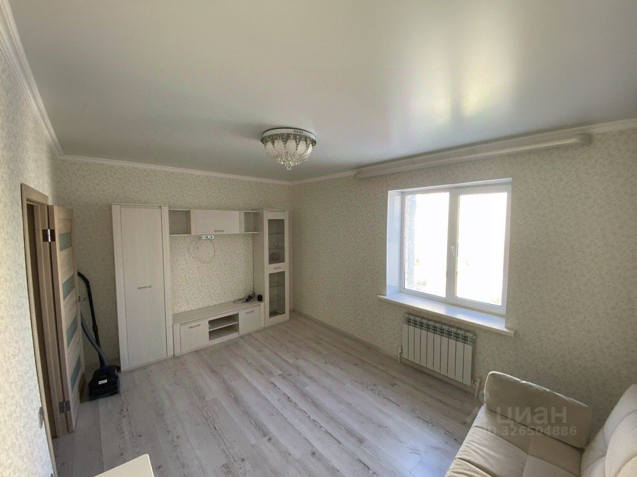 В зале раскладывающийся диван (после хим.чистки), гарнитур для ваших вещей.