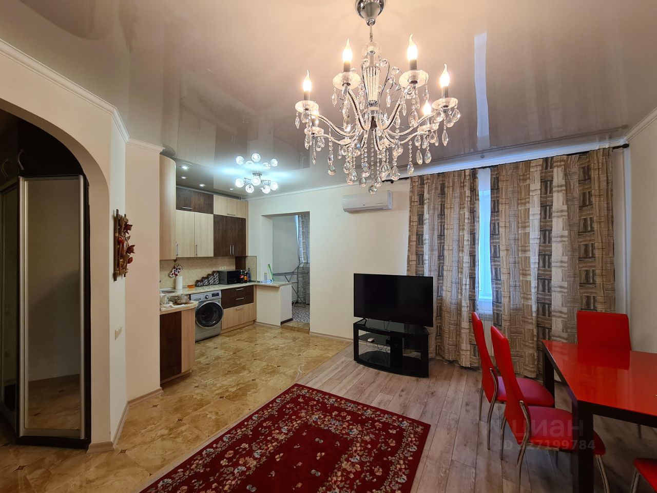В квартире есть всё необходимое для комфортного проживания. Евроремонт выполнен в современном стиле. В комнатах и на кухне установлена мебель, которая гармонично вписывается в интерьер. Из техники в вашем распоряжении: кондиционер, холодильник, телевизор и стиральная машина. Ванная комната оборудована душевой кабиной. Лоджия обеспечивает дополнительное пространство для отдыха или хранения вещей.