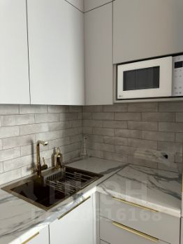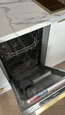 На кухне дорогая техника - индукционная плита, духовка, микроволновка, холодильник, посудомойка. Много пространства для хранения.