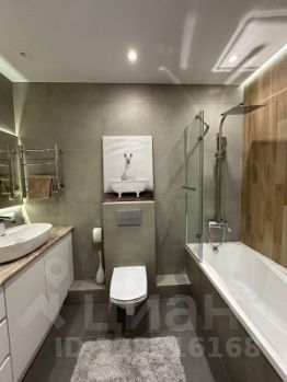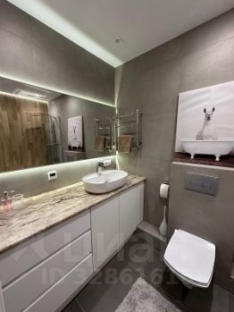 Санузел совмещенный с ванной, зеркало с подсветкой.