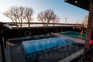 В гостевом доме 2 гостиные, 3 спальни с видом на реку имеют собственные выходы к бассейну, кухня с мангалом, столовая, прачечная комната, две стиральные машины, утюг, гладильная доска, два санузла, гараж на два автомобиля, тёплые полы, системы кондиционирования. Банный комплекс - хаммам. Бассейн с подогревом и противотоком, станцией водоподготовки. Детская площадка с аттракционами.