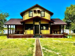 Сдача в аренду современной недвижимости- Усадьба Счастья, с развитой инфраструктурой, большой территорией в 29 соток, под охраной. Всё в доме абсолютно новое. Дом обеспечен всем необходимым для комфортного проживания, от чайной ложки до посудомоечной машины. Вместимость от 6 до 8 человек. Сдача в аренду от ТРЁХ СУТОК и более. Река непосредственно на участке, в 30 метрах от дома. Местонахождение: Астраханская область. Камызякский район, село Караульное (последнее село перед Каспийским взморьем). Координаты- с.ш. 45,891249, в.д. 48,139005. Дом находится в 53 км. от города Астрахань, проезд по скоростной асфальтированной трассе 12Н-084, без паромов. Экологически чистый, двух этажный новый дом из бруса и кирпича, внутри обшит деревом, площадью 165 кв.м., с большой кухней, тремя спальнями, гостиной, двумя ванными комнатами, гардеробной и кладовой комнатами, единой террасой вокруг трёх сторон дома и полностью укомплектован всем необходимым для проживания и отдыха. В доме установлено кондиционирование каждой комнаты, инфракрасное и водяное отопление, большие душевые кабины, газовая и электрические плиты, стиральная и посудомоечная машины, холодильник и морозильная камера, цифровое телевидение и Wi-Fi. На территории находятся автостоянка на 2 машино- места, мангальный зал с оборудованием (коптильни, мангал с шампурами и решётками гриль, котёл для ухи и шурпы), беседка для отдыха, понтон на воде, бассейн, детская площадка, зона загара с шезлонгами и зонтами на речном песке. Территория обрабатывается от комаров и насекомых. Село Караульное находится в 1.5 км. от усадьбы, поэтому сельского шума нет. Река Обуховская очень рыбная, (в 2023 году проведено дноуглубление всей реки) а непосредственно рядом, в радиусе 1 км., протекают реки Кизань, Затон и Николаевская. До каспийских раскатов 25 минут хода на катере. Выход на все существующие банки и протоки. Рыбалка активная и добычливая прямо с берега и на окрестных реках, раскатах (возможна аренда катеров). Вокруг полуострова гнездятся гуси и утки, цветёт лотос, поют птицы. ДОМ СДАЁТСЯ ОТ ТРЁХ СУТОК (не менее). Фото весны 2025 года. Бронирование по Договору аренды. Будем Вам рады! Звоните , бронируйте пожалуйста заранее! Рыбалка в Астрахани. Отдых в Астрахани. Снять дом в Астраханской области. Дом на реке в Астрахани.