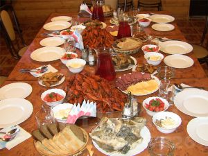 Отдельно оборудовано место для чистки и обработки трофеев, коптилка для горячего копчения, в наличии -8 мангалов.