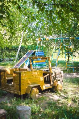 Территория озелена: можжевельником, соснами, елками, березовой рощей, цветником. На берегу р. Волга рыбалка.