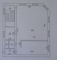 1 этаж представлен: торговый зал и подсобные помещения (склады, котельная, санузел) с выходом на лестницу и в зону разгрузки.