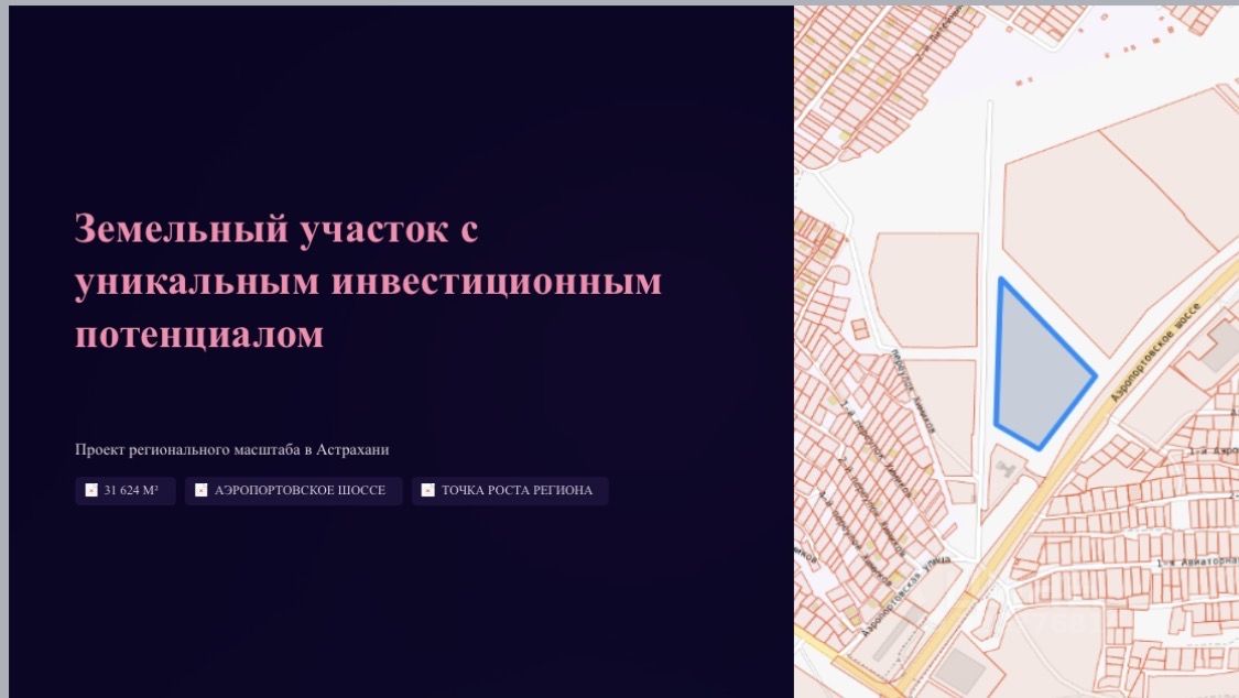 Продается уникальный земельный актив площадью 31 624 м² в г. Астрахань. Идеальная площадка для реализации масштабного инвестиционного проекта федерального уровня.