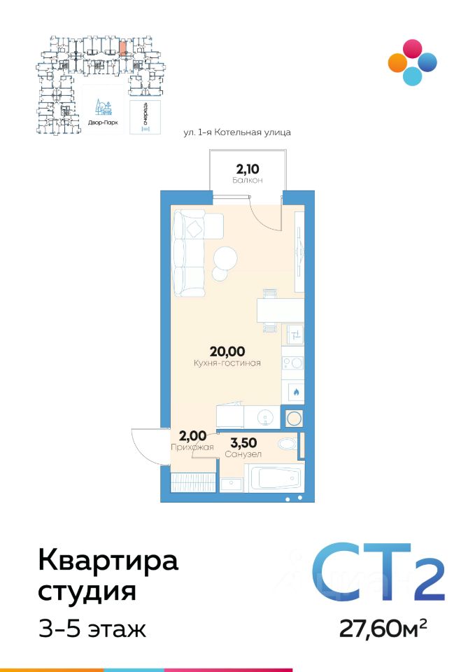 Уютная светлая квартира-студия площадью 26 м² идеально подойдет молодым, творческим, современным людям, живущим одним, или паре без детей.