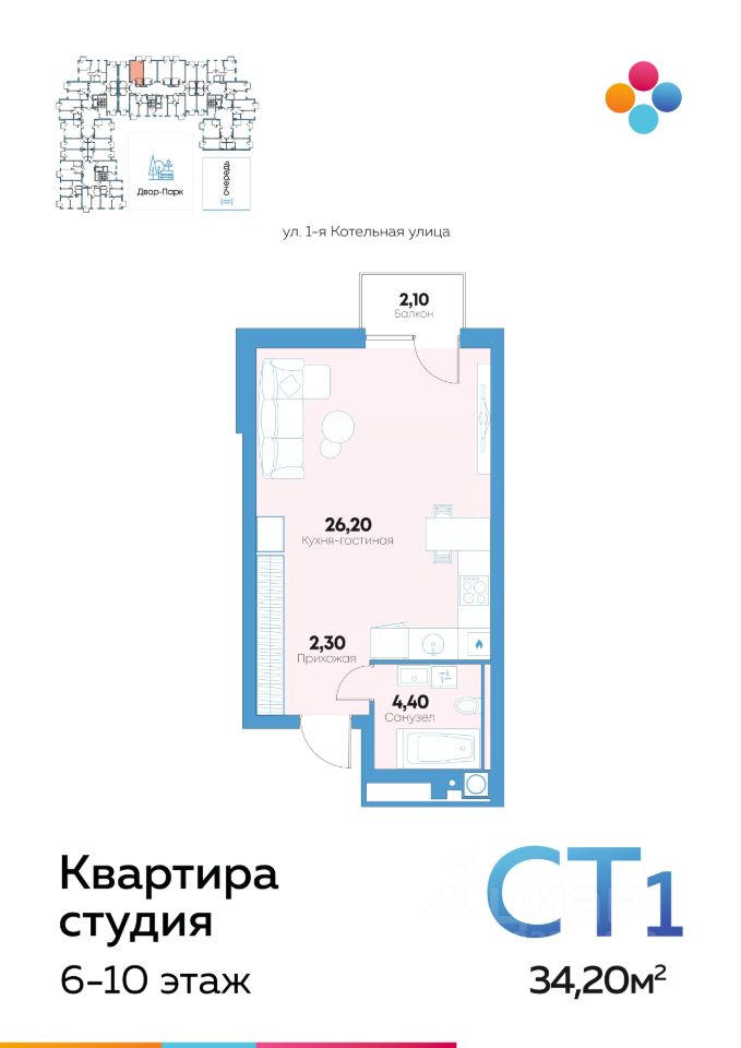 Жилой квартал "Семейный" это современный проект с продуманным подходом к организации пространства, в котором сочетаются уют, функциональность и комфорт для будущих жильцов. Комплекс состоит из домов II очередей. Срок сдачи в эксплуатацию I очереди 1 квартал 2025 года. Начало строительства II очереди 1 квартал 2025. Количество квартир в доме 327. Высота потолков 2,80 м. В каждом подъезде будет установлен бесшумный грузопассажирский лифт. На территории жилого квартала расположен двор-парк площадью 0,4 Га. Первый этаж жилой, за исключением нескольких общественных зон: гостевой санузел; зона для вашего питомца "Чистые лапки"; пеленальная зона. Комплекс сочетает в себе все преимущества спального района: развитую инфраструктуру и отсутствие высокого автомобильного трафика, что напрямую влияет на его экологичность. Квартира в ЖК "Семейный" прекрасно подойдет и для семей с детьми, и для молодых людей, следящих за своим здоровьем, а также для пожилых людей. Прямая продажа от застройщика RES DEVELOPMENT Продается квартира в строящемся 10-ти этажном монолитно-кирпичном доме жилого квартала "Семейный". Уютная светлая квартира-студия площадью 34,37 м² идеально подойдет для молодежи, студентов, молодой пары или людей, которые занимаются творческой работой и скорее используют помещение в качестве рабочего места. Просторная комната площадью 27,94 м² хорошо освещена. При необходимости можно зонировать пространство по своему усмотрению. Из комнаты есть выход на балкон площадью 2,07 м². Здесь можно оборудовать дополнительное место для работы или отдыха. Санузел в квартире совмещенный. На площади 4,36 м² можно разместить всю необходимую сантехнику и прачечную зону. Высота потолков в квартире 2,80 м. В квартире будет установлен двухконтурный газовый котел, а также будут возведены пазогребневые межкомнатные перегородки, что при необходимости дает возможность реализовать проект по своему дизайну. Двухкамерный стеклопакет, предусмотренный в квартире, защитит вас от пыли и шума, а качественную входную дверь не придется менять после заселения. Продуманная планировка квартиры подойдёт для тех, кто ценит уединение и отсутствие лишних деталей.