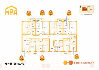 "МЁД" — это новый квартал, расположенный в экологически чистом и тихом микрорайоне Казачий по адресу: ул. Украинская, в 2-х минутах от парка имени В. И. Ленина, ул. Космонавта Комарова и реки Прямая Болда.