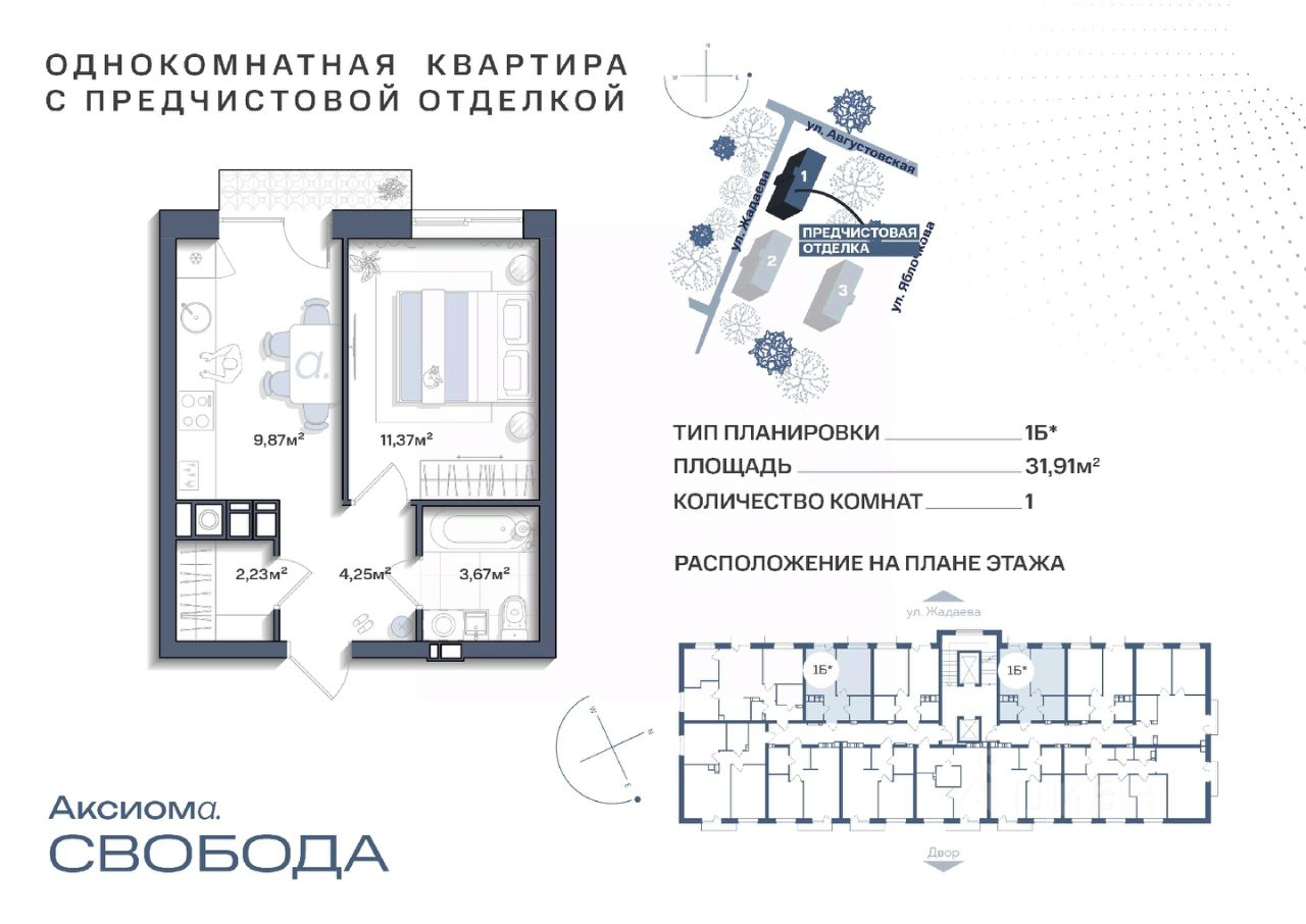 Продаётся 1-комнатная квартира в строящемся доме (Дом 1), срок сдачи: II-кв. 2026, общей площадью 31.9 кв.м., на 8 этаже. Свобода духа, свобода выбора, свобода творчества! Место, где вы точно станете автором своей жизни!