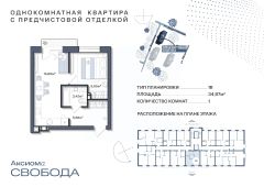 Продаётся 1-комнатная квартира в строящемся доме (Дом 1), срок сдачи: II-кв. 2026, общей площадью 34.96 кв.м., на 9 этаже. Свобода духа, свобода выбора, свобода творчества! Место, где вы точно станете автором своей жизни!