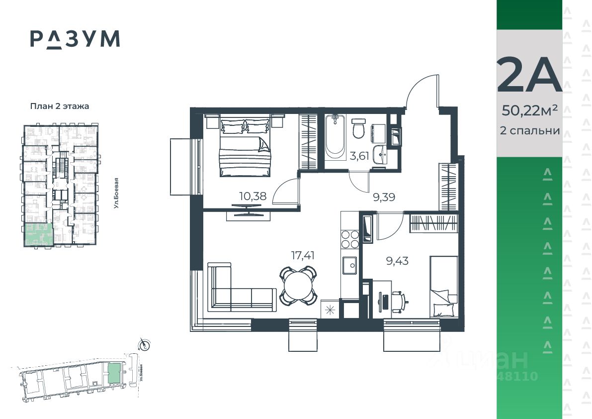"РАЗУМ на Боевой" жилой комплекс компании "РАЗУМ", создателя "Сердце Каспия" и "Наследие". Проект из трех 18-этажных домов расположен в самом центре Советского района, на улице Боевая. В пешей доступности: - 3 школы; - 3 детских сада; - магазины; - автобусная остановка; Главная особенность проекта — угловое остекление, которое составляет 22% от всей площади. Все окна в квартирах находятся на высоте 62 см от пола, а на восемнадцатом этаже подоконник расположен всего в 42 см от пола. Во дворе-парке для детей создана своя развивающая среда, где каждый ребёнок может найти себе занятия и игры по душе. Здесь дети активно развиваются и познают окружающий мир. Игровые конструкции изготовлены из натуральных материалов, поэтому они не замерзают на морозе и не нагреваются на солнце. Необычные формы конструкций развивают образное мышление у детей и помогают им придумывать интересные и нестандартные игры. "РАЗУМ на Боевой" — это: - территория без машин; - безбарьерная среда; - единый эко-стиль в оформлении дворового пространства; - увеличенная площадь озеленения во дворе-парке; - многоуровневое освещение и подсветка фасадов; - видеонаблюдение; - эстетичные подъездные холлы; - колясочные и велосипедные зоны; - кладовые на каждом этаже. В проекте представлены 13 планировочных решений с площадью квартир от 21 м² до 62.2 м² с функциональным разделением на гостевую и приватные зоны.