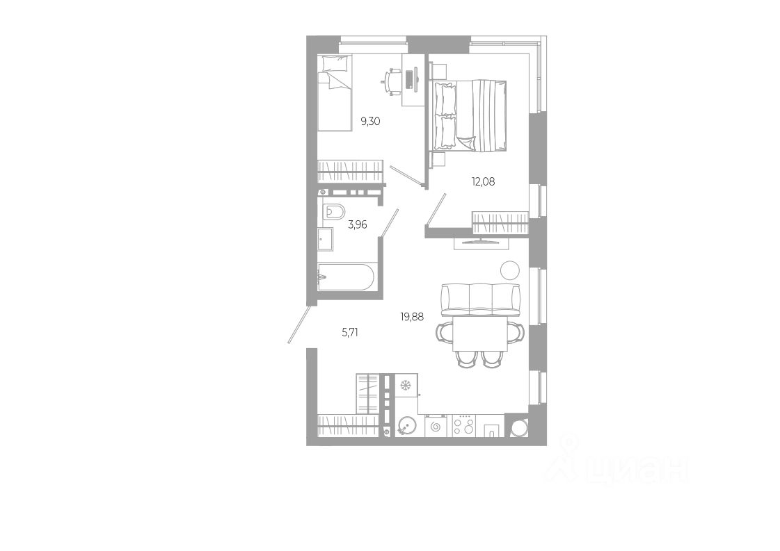 Общая площадь50,94 м²
