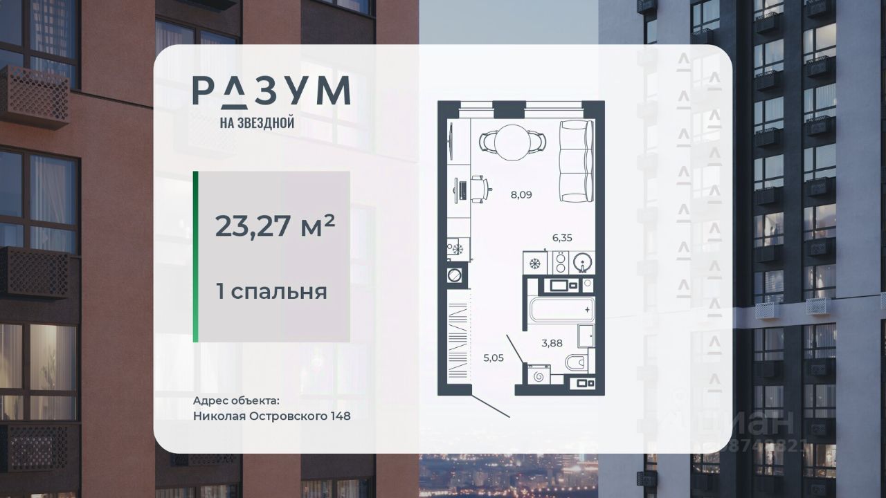 РАЗУМ на Звездной — высотный жилой комплекс компании РАЗУМ, создателя Сердце Каспия и Наследие. Здесь есть: развитый район, закрытая безопасная территория и транспортная доступность. Три 26-этажных дома расположены в границах ул. Звездной и Николая Островского. В пешей доступности: - 3 школы; - 4 государственных детских сада; - гипермаркет; - супермаркеты; - развивающие образовательные центры. РАЗУМ на Звездной — это: - 60 % озеленения в благоустройстве, детские игровые конструкции и зоны отдыха выполнены из экологичных материалов; - многоуровневое освещение территории с архитектурной подсветкой комплекса; - закрытая территория комплекса и видеонаблюдение по периметру и в холлах; - безбарьерная среда на территории жилого комплекса: удобство для велосипедистов, родителей с маленькими детьми и путешественников с большими чемоданами; - уютная зона ожидания с мягкой мебелью в холлах проекта и раздельные зоны под колясочные и велосипедные; - кладовые помещения на каждом этаже. В проекте РАЗУМ на Звездной представлено 13 планировочных решений от 21,08 м² до 63,39 м². Есть квартиры с предчистовой отделкой. В квартирах выровнены стены, выполнена полусухая стяжка пола, установлены радиаторы и трехконтурный газовый котел. В квартиру заведено электричество и установлена входная дверь.