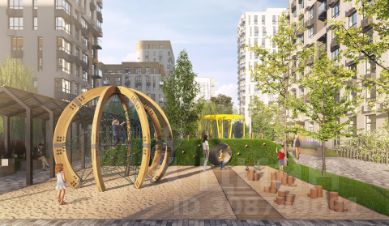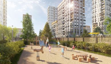 Общая площадь благоустройства проекта — 7 гектаров. Главная особенность проекта — переменная этажность домов от 8 до 25 этажей.