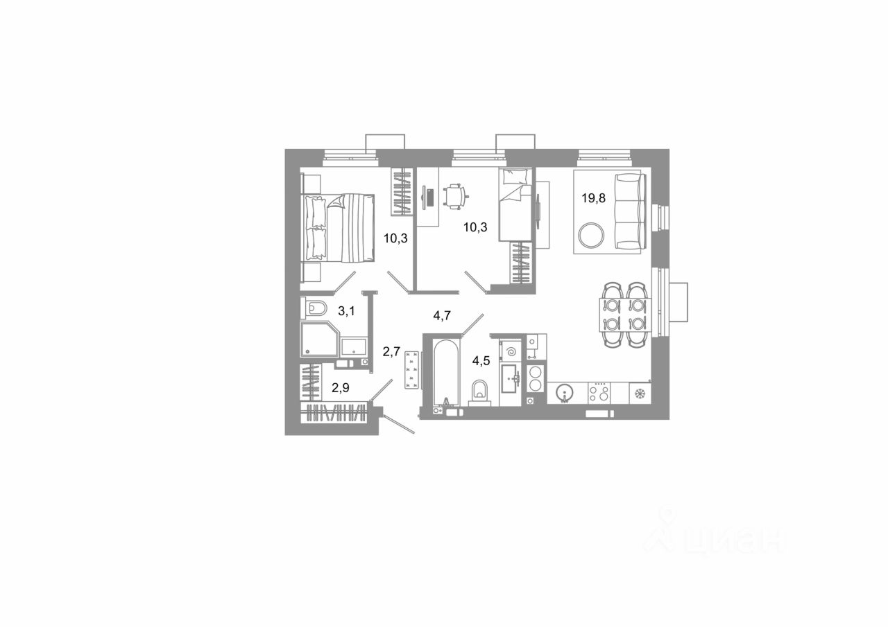 Общая площадь58,3 м²