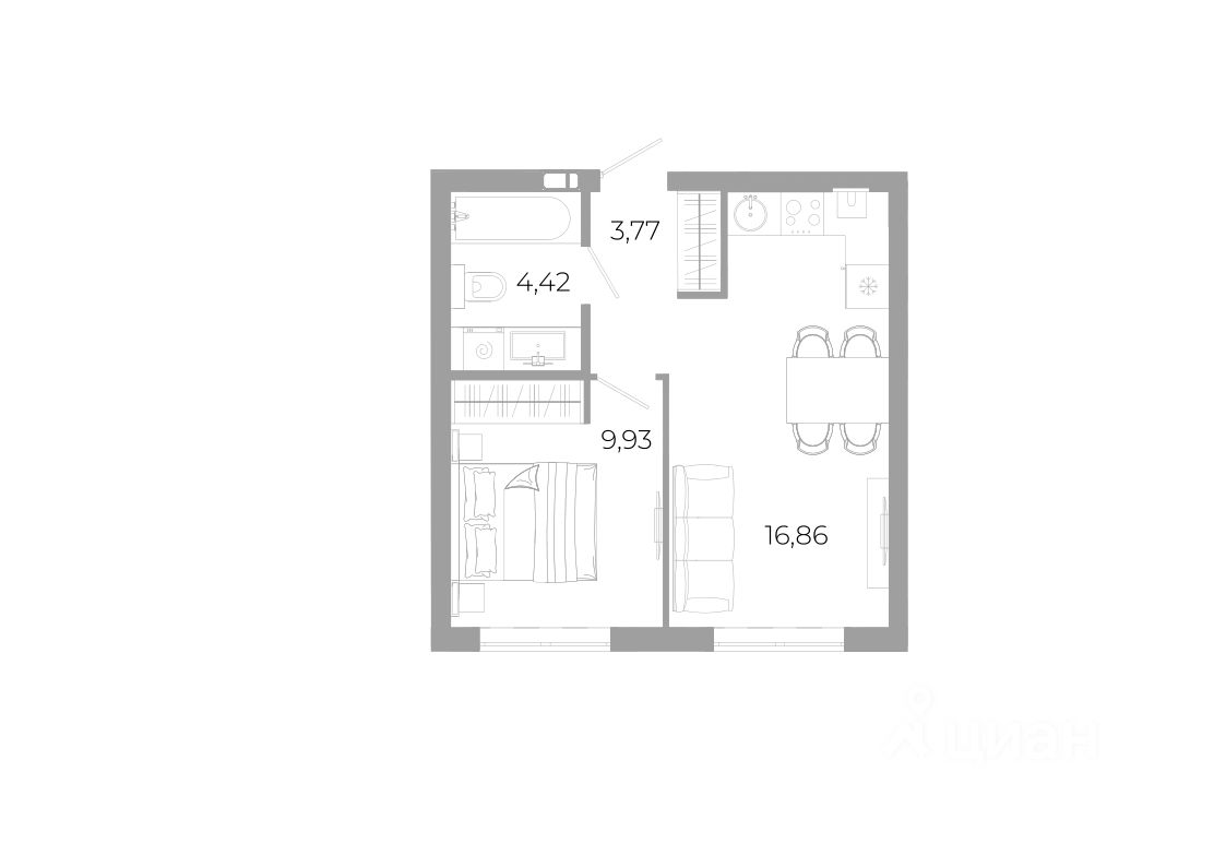 Общая площадь34,3 м²