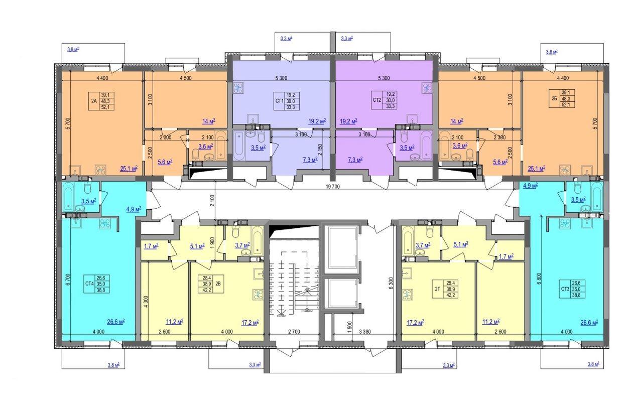 Продуманные планировки: На лестничной площадке не более восьми квартир, минимальная площадь квартиры 33,3 кв.м. Мы отказались от маленьких студий, чтобы обеспечить вам простор и комфорт.
